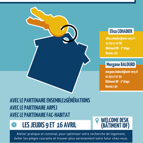 Les partenaires logement : l'ARPEJ, Fac-habitat et Ensemble2générations tiendront des permanences au Welcome Desk pour proposer aux étudiant·es des...