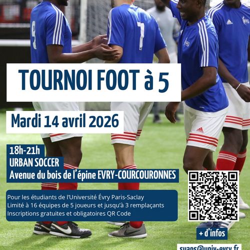 Vous êtes étudiant·es à l'Université d'Évry et adepte du foot ? Participez au tournoi de foot à 5 mardi 14 avril !