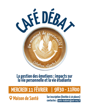 La Maison de Santé des Étudiants vous invite à un moment d’échange et de convivialité autour du thème : « La gestion des émotions : impacts sur la vie personnelle et la vie étudiante ». Une belle occasion pour partager, comprendre et mieux appréhender vos émotions au quotidien autour d'une petite collation !