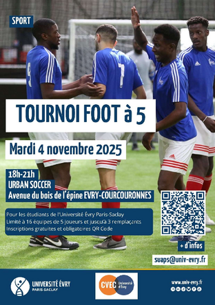 Vous êtes étudiant·es à l'Université Évry Paris-Saclay et adeptes du foot ? Inscrivez-vous et participez à ce tournoi !