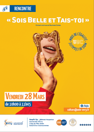 Dans le cadre du mois de l’égalité proposé par la Ville d’Evry-Courcouronnes sur les questions de Médias et Images, nous vous invitons à une projection d’extraits du documentaire « Sois belle et tais-toi » de l’actrice Delphine Seyrig.