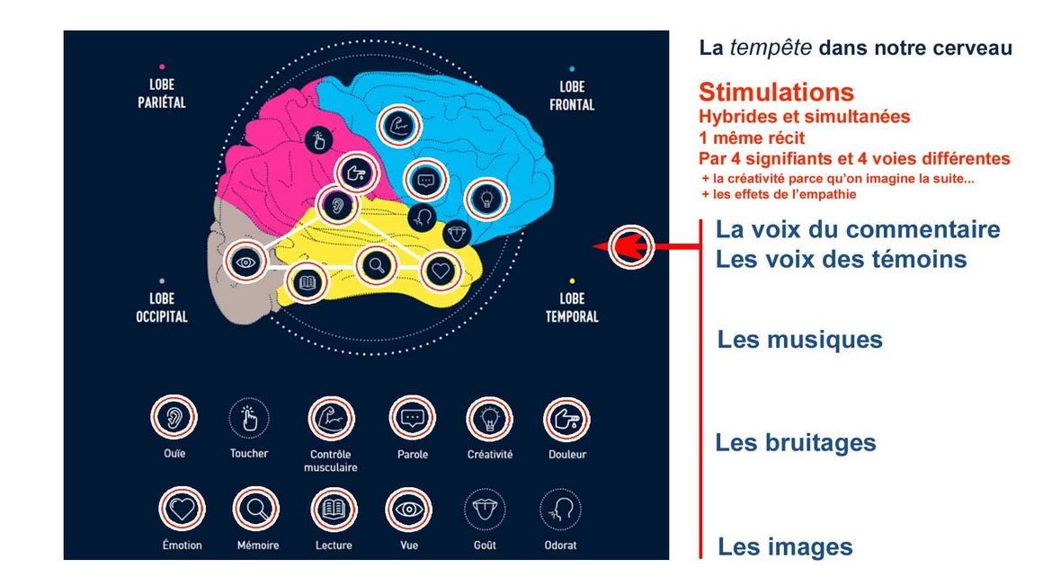 Depuis le film « Septembre 1930. Thonier dans la tempête », le rapport entre les récits (voix), les images (iconographiques et animées), les sons (bruits) et la musique (instrumentaux et chants) m’obsède.