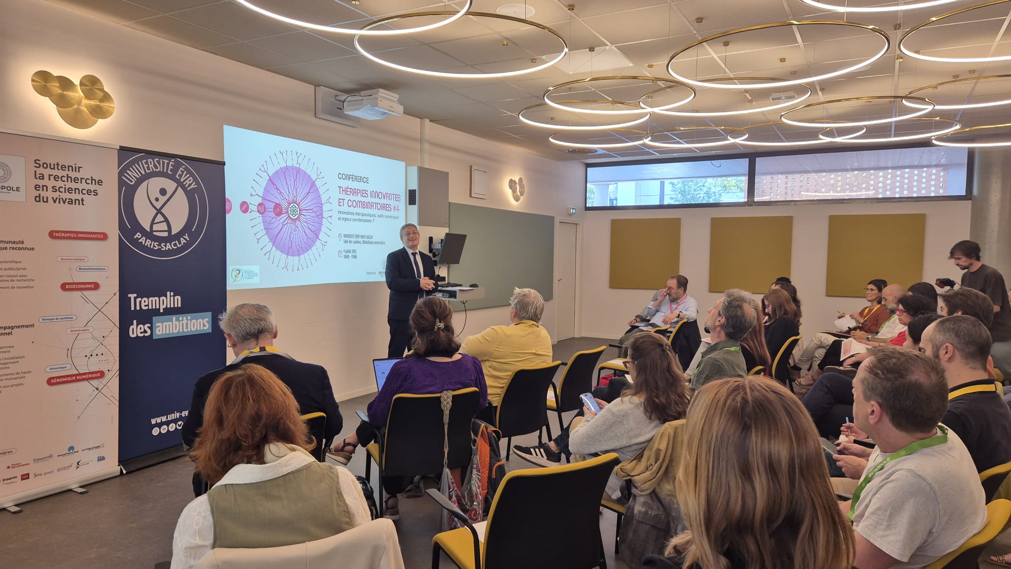 Le 9 juillet 2025, l’Université Évry Paris-Saclay, Genopole et le laboratoire LBEPS ont co-organisé la 4e édition de la conférence « Thérapies innovantes et combinatoires », un rendez-vous désormais incontournable pour les acteurs de la recherche biomédicale. Chercheurs et chercheuses, clinicien·nes, ingénieur·es et entrepreneur·es se sont réunis sur le campus universitaire pour réfléchir ensemble aux stratégies thérapeutiques de demain, combinant biologie, génétique, pharmacologie et numérique.