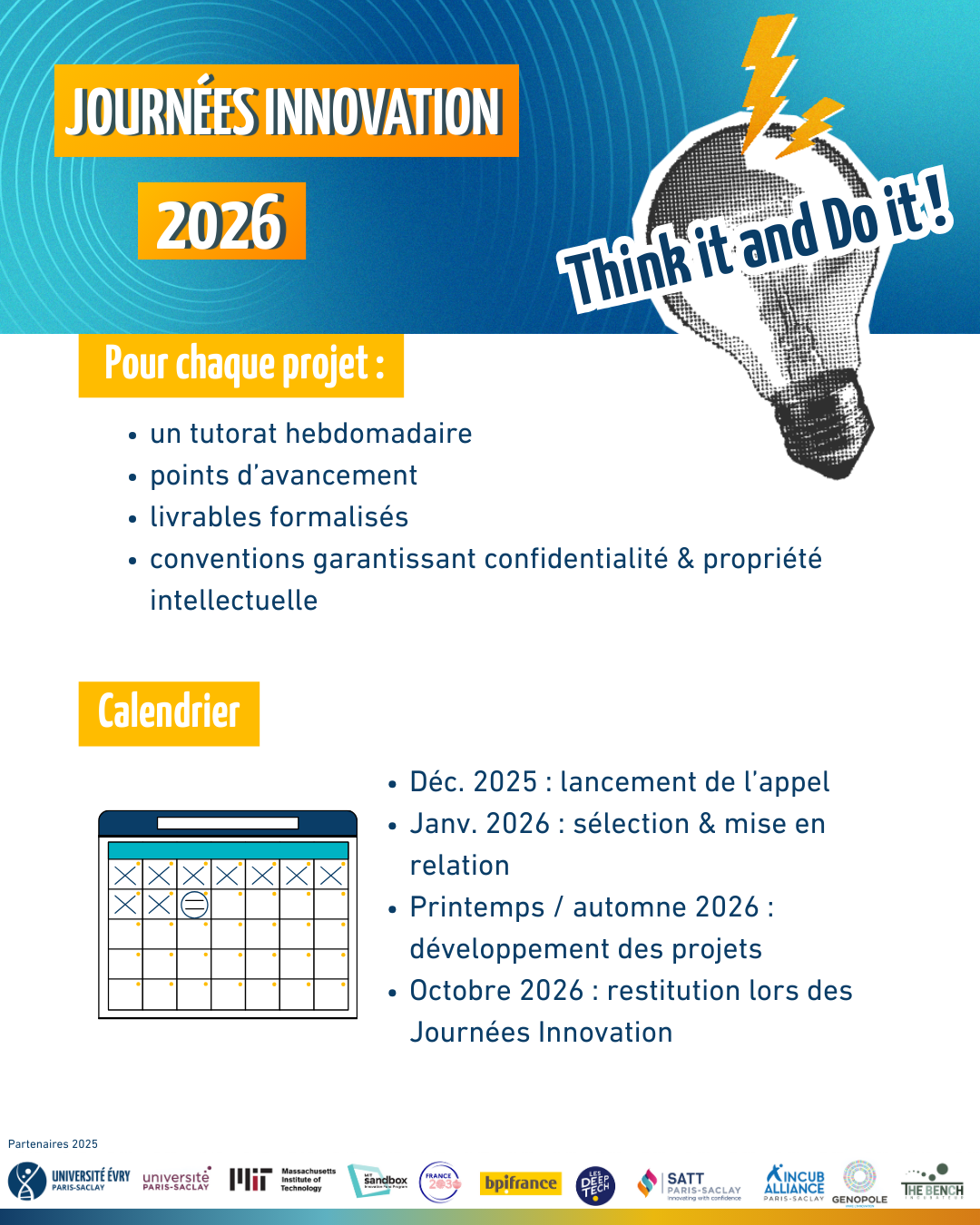 - Lancement des Appels à Manifestation et Appel à Projet : décembre 2025