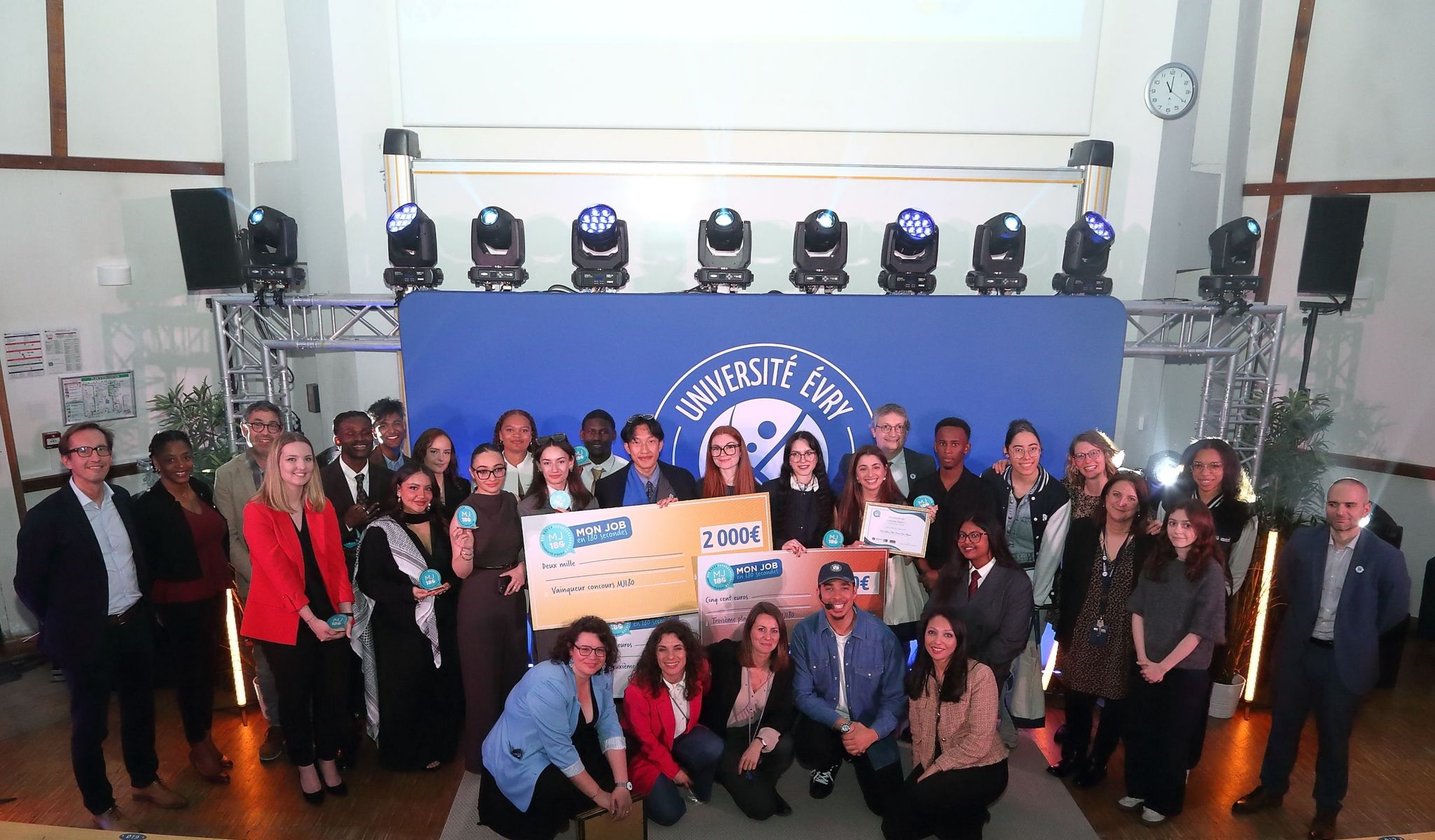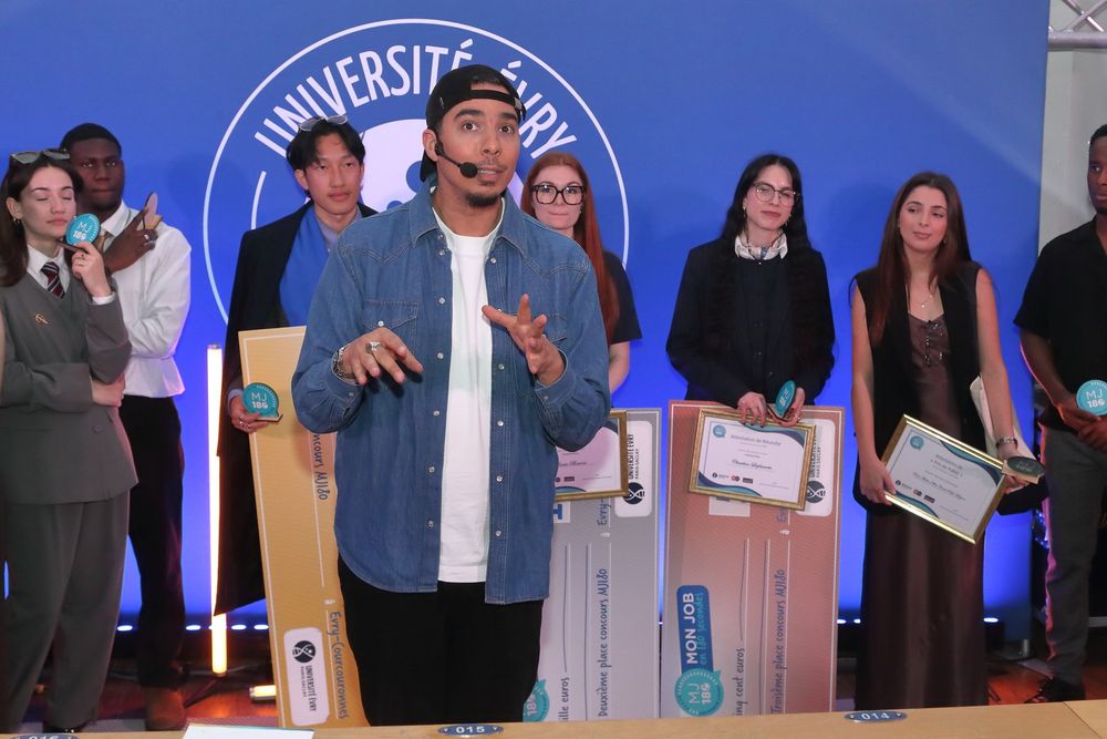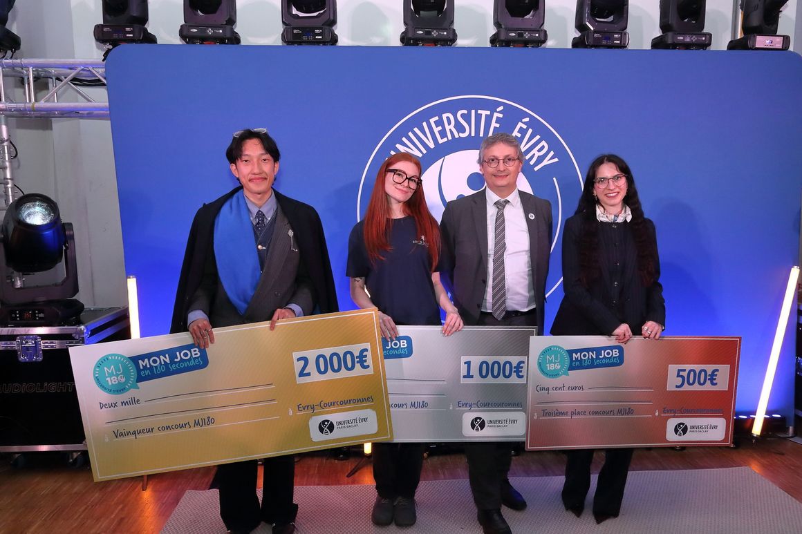 La grande finale de Mon Job en 180s a eu lieu le 16 avril dernier dans l'amphi 300 sur le campus central de l'Université Évry Paris-Saclay où nos 15 finalistes se sont affrontés et ont livré leur plus beau pitch ! À l'issue de la compétition les 3 gagnant·es ont été désignés. Voici un retour sur cette troisième édition où nos étudiant·es ont été époustouflants !