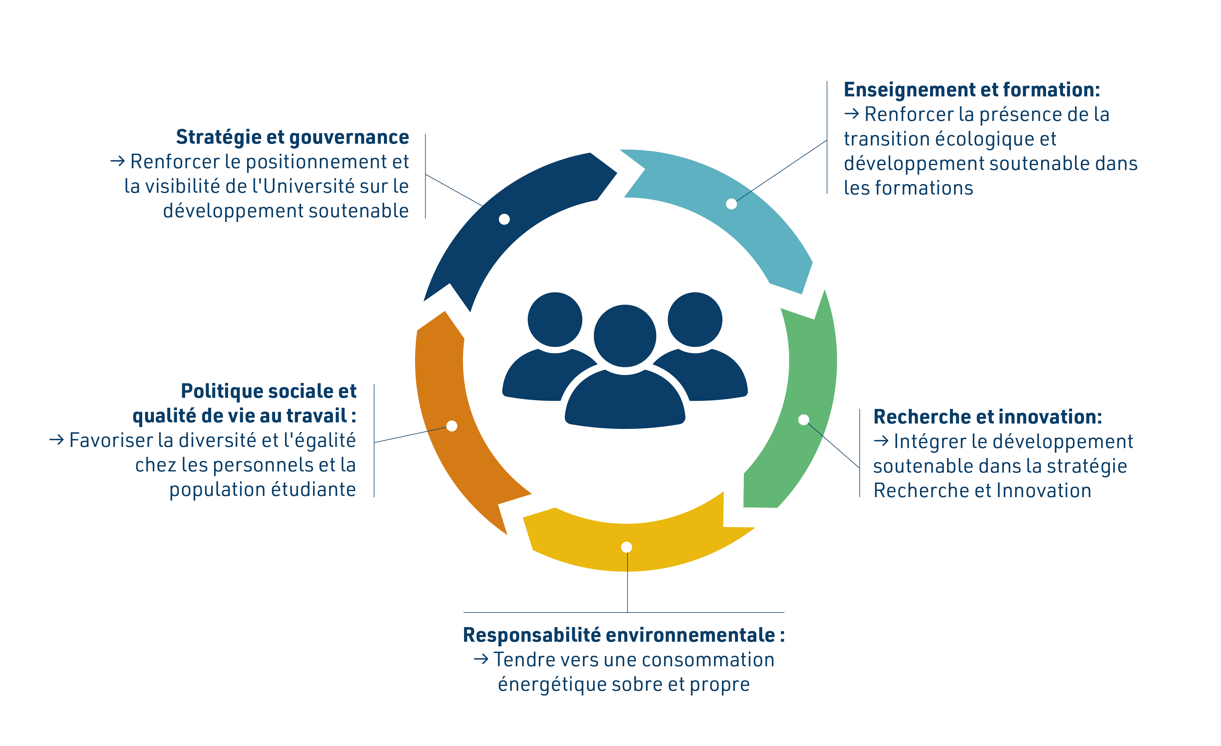 Avec près de 14 000 personnes dans notre communauté universitaire, nous avons la volonté et la responsabilité d’intégrer le développement durable dans toutes nos activités : enseignement, recherche, achats, consommation, gestion des déchets, mais aussi qualité de vie pour les étudiants et les personnels.