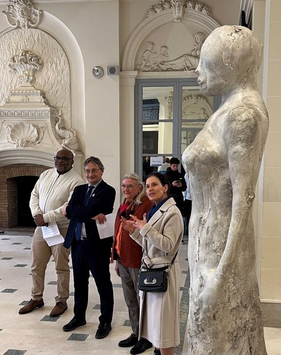 Sculpture réalisée par Michel Charpentier, La Dame de Bercy au château de Brétigny-sur-Orge. Vernissage en présence du président de l’Université Evry Paris-Saclay, Vincent Bouhier et du directeur de l’IUT Pierre Ngae, de Lydia Harambourg historienne critique d’art et de Pascale Charpentier fille du sculpteur.