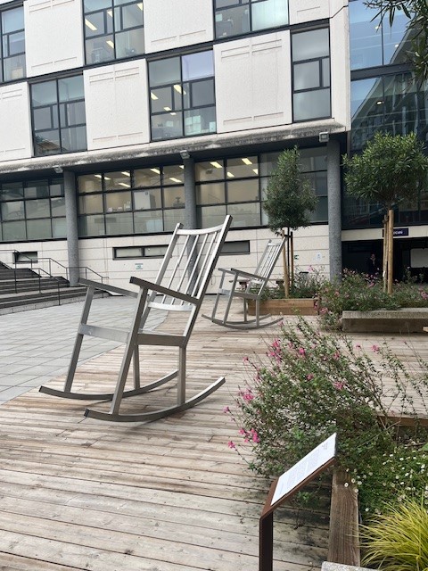 Les Rocking chairs de Lilian BOURGEAT qui ont pris place au bâtiment des sciences (Maupertuis) - Prêt FDAC